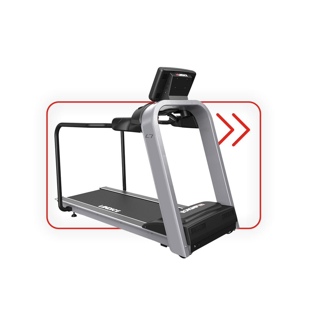 L7 Rehabilitation Treadmill – the ultimate solution for rehab and conditioning. With a zero starting speed, extended medical handrails, and an expansive 20" x 58" walking surface, it's perfect for physical therapy and sports conditioning. Experience the power of the L7 to enhance rehabilitation and conditioning programs.